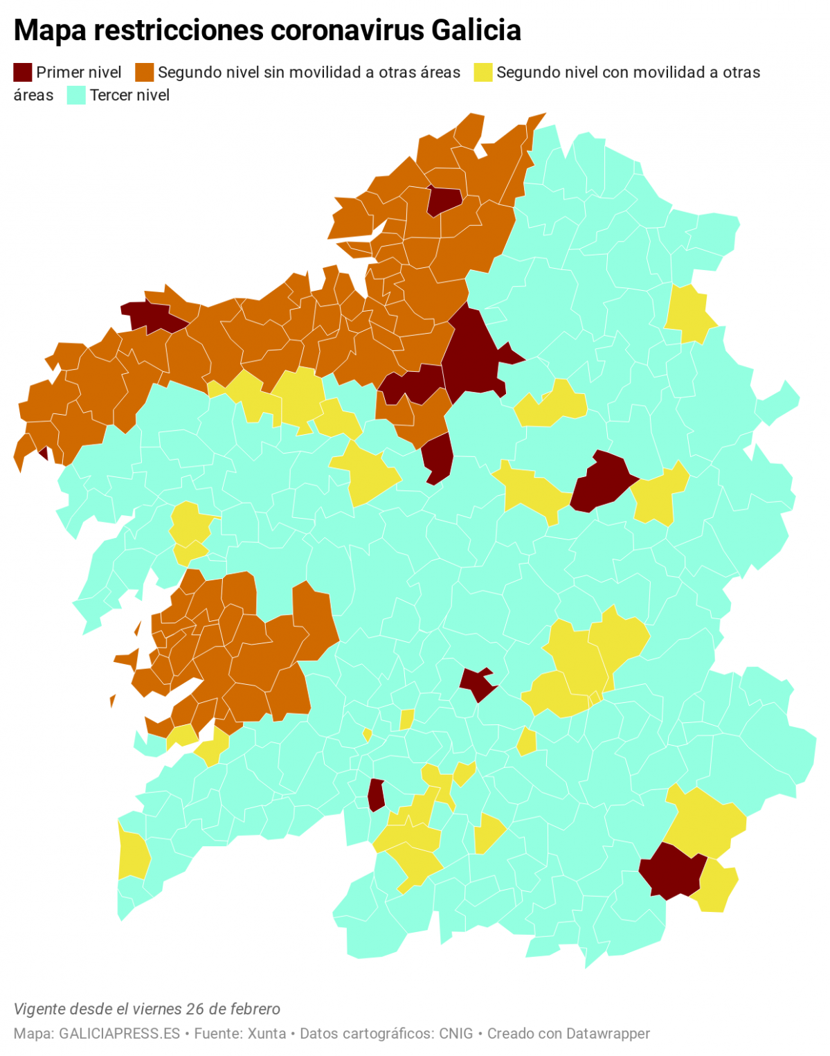 Tlfqmib0x2kc1m from static.elcorreo.com Así lo anunció ayer el. No usar mascarilla o usarla de forma inadecuada, hacer botellón, consumir bebidas alcohólicas en la calle, parques, plazas u otros sitios de tránsito público, no someterse a un. Para esto, el comité asesor ha aprobado un sistema de restricciones por niveles, ligado a la situación epidemiológica de cada municipio. Galicia inicia su segunda desescalada. Queda restringida la entrada y la salida de personas de forma individual en los siguientes. Con esta app puedes, fácilmente consultar entre que municipios puedes desplazarte. Tal y como informó ayer el ejecutivo gallego, las restricciones por lo que respecta al toque de queda, la xunta de galicia ha decidido atrasarlo desde las 23:00 hasta las 6:00 horas. En el resto del territorio de la comunidad autónoma de galicia, se limita la permanencia de grupos de personas a un número máximo de 6, tanto en espacios de uso público como privado, salvo.